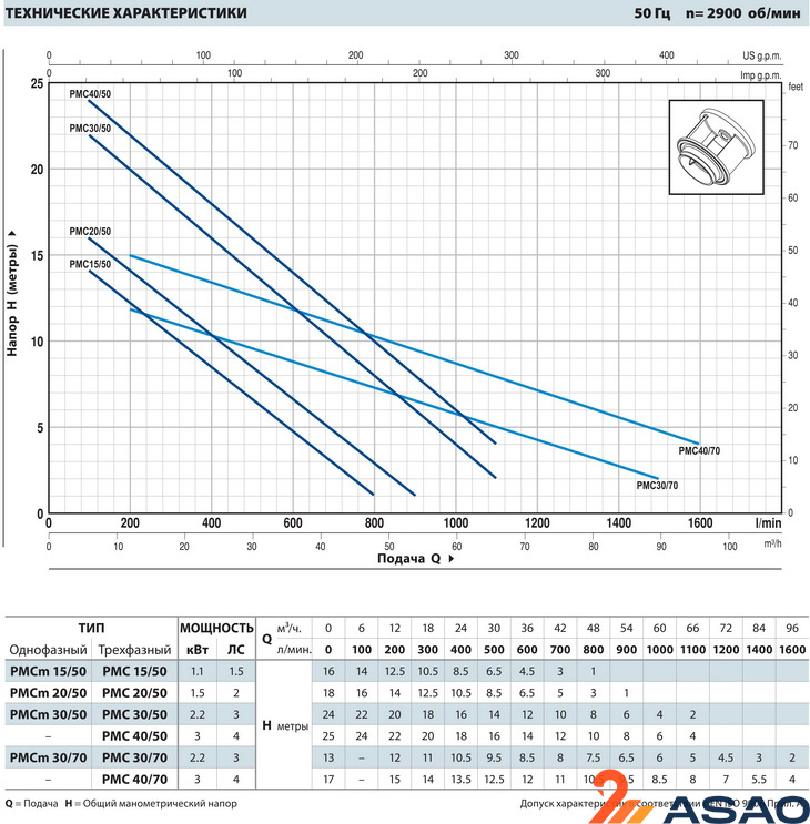 Погружной насос Pedrollo MC-F 20/50 - это высокопроизводительный агрегат, рассчитанный на промышленное напряжение в сети - 380 В при мощности 1,5 кВт.