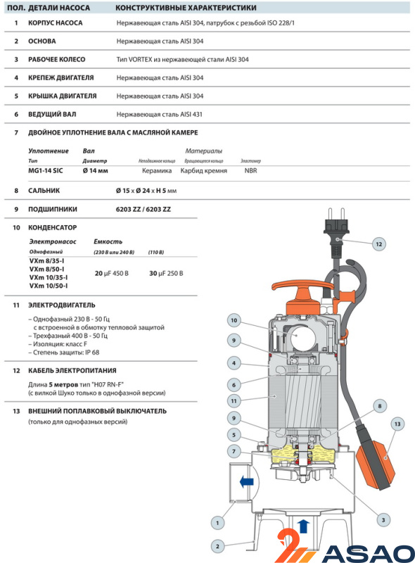 Погружной насос Pedrollo VXm 10/35-ST применяется для отвода сильнозагрязненных стоков (в том числе нечистот), грунтовых вод с примесью ила и песка, осушения неглубоких колодцев, септиков, приямков.