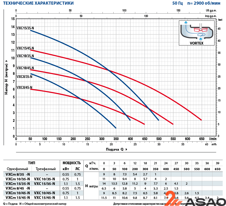 Однофазная модель VXCm 8/45-N оснащена поплавковым выключателем, защищающим оборудование от сухого хода и гарантирующим его сохранность.