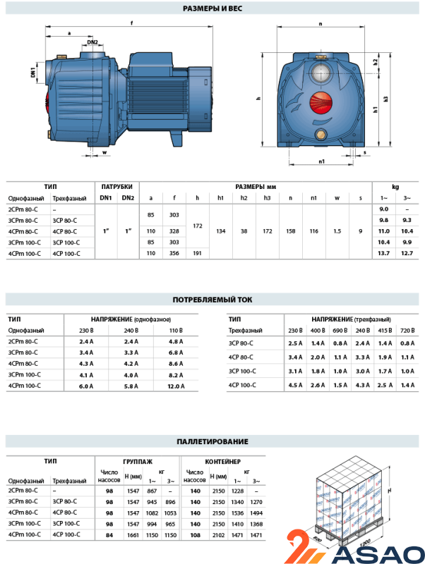 Pedrollo 2CPm 80-C - это поверхностный насос, предназначенный для использования в промышленном производстве. Его мощность дает возможность подавать значительные объемы жидкости при большом напоре.