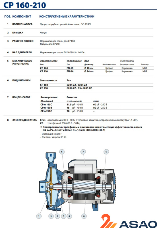 - КОРПУС НАСОСА: чугун