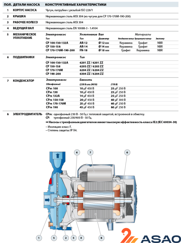 - КОРПУС НАСОСА: чугун