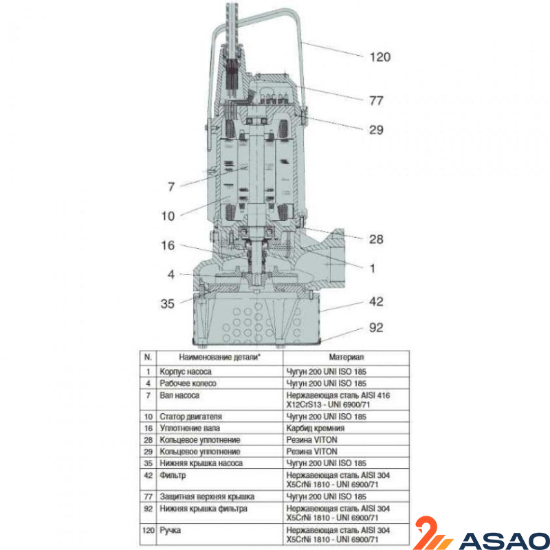 Расположение напорного патрубка с внутренней резьбой 2" делают насос удобным для монтажа на стандартное подъемное устройство.