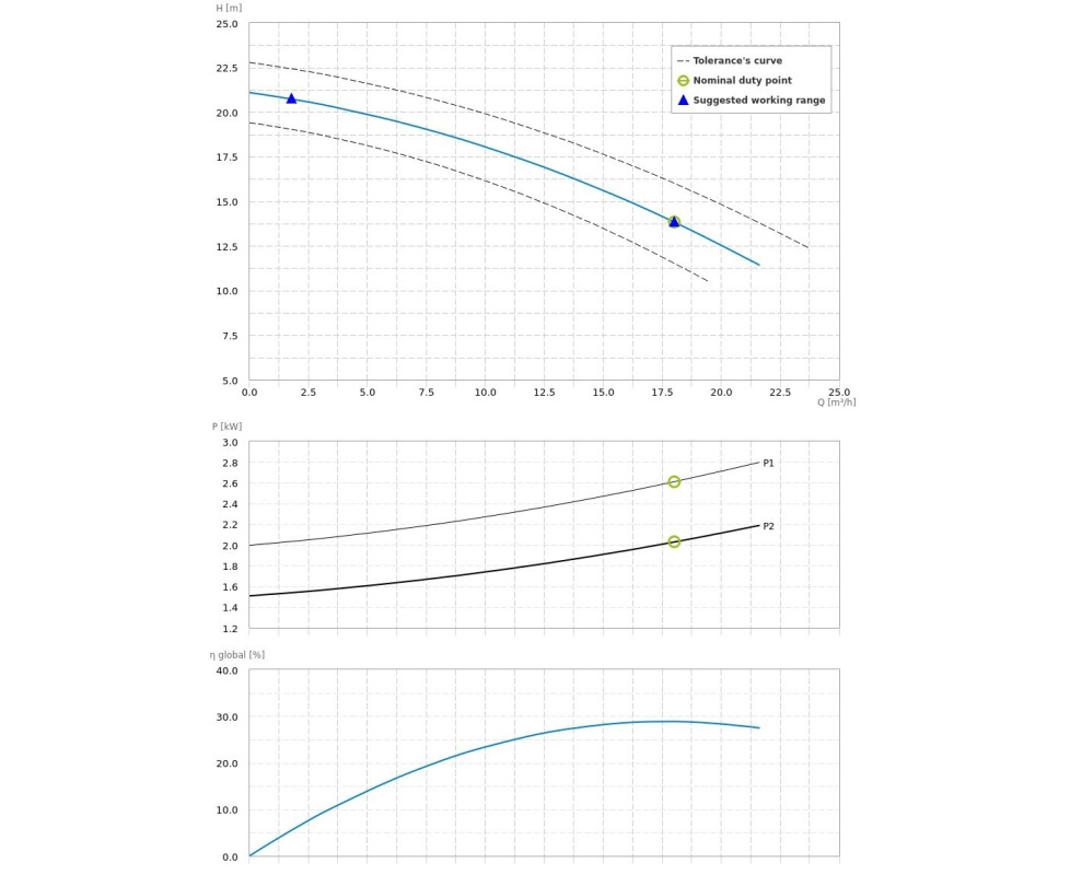 - гидравлические характеристики действительны для жидкостей с плотностью менее 1.1 кг/дм3