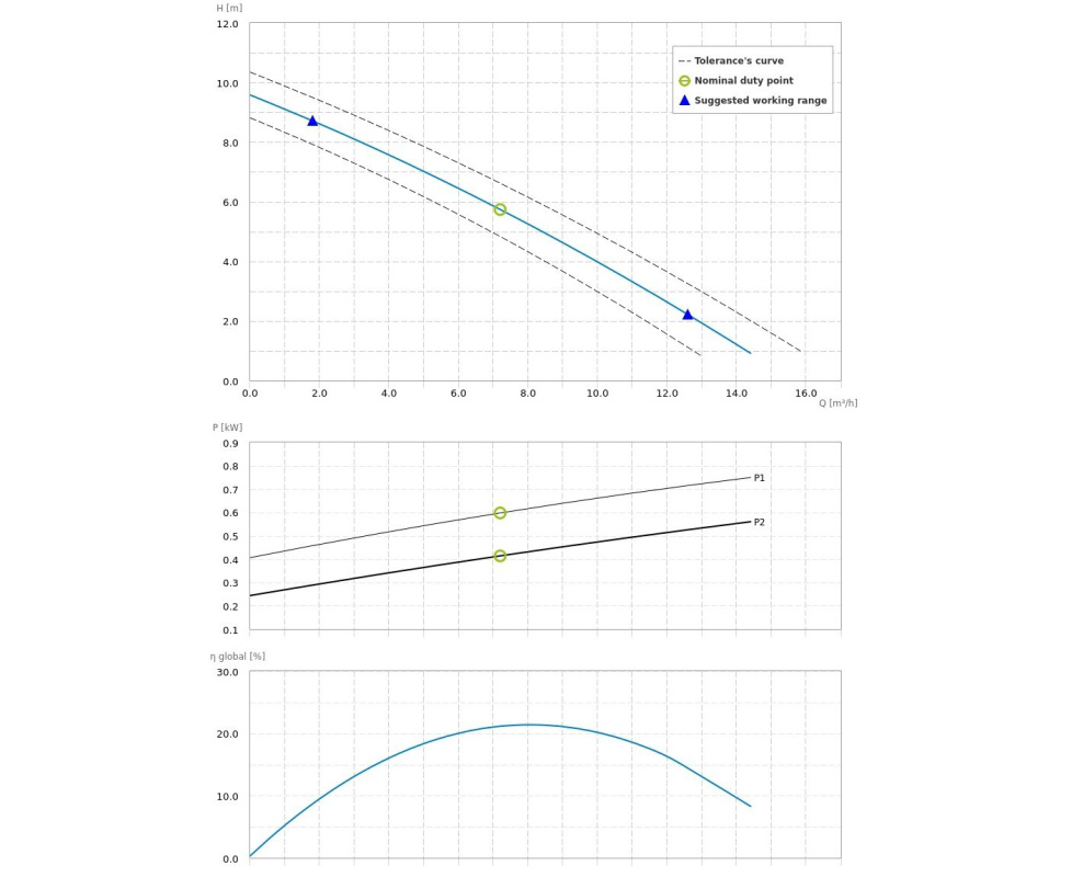 - гидравлические характеристики действительны для жидкостей с плотностью менее 1.1 кг/дм3