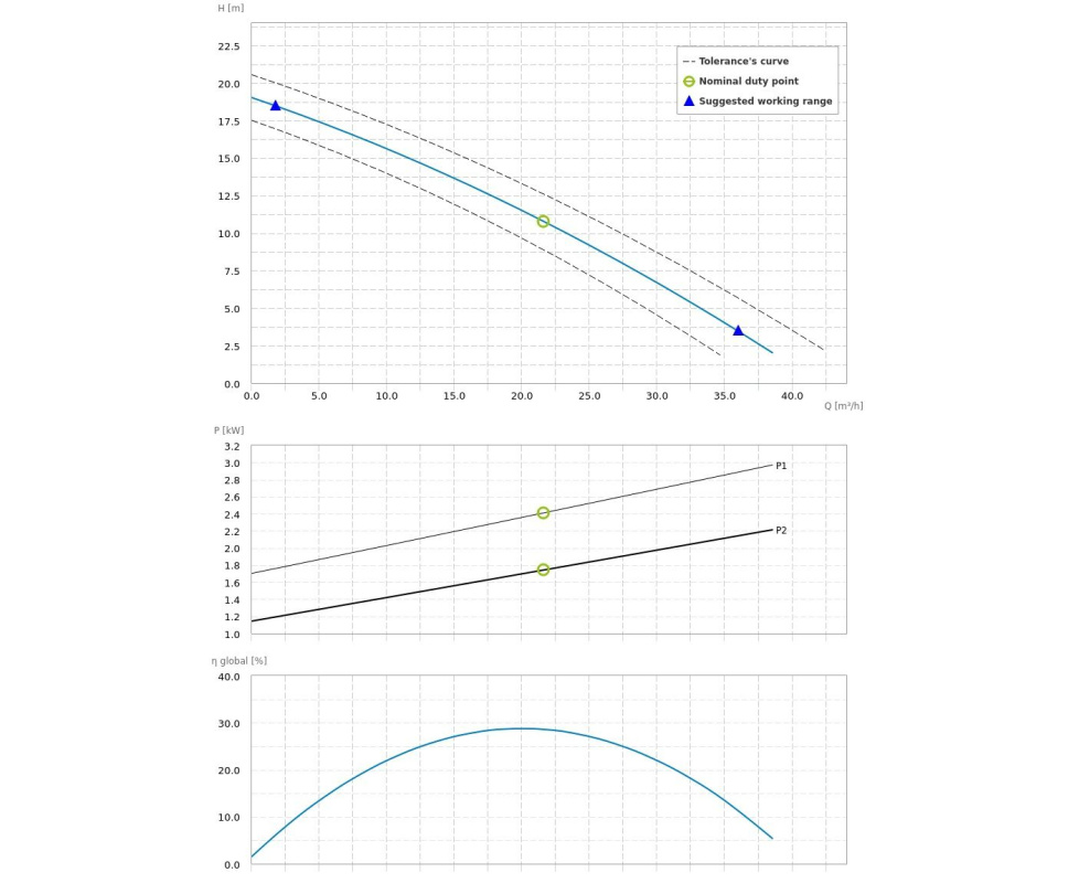 - гидравлические характеристики действительны для жидкостей с плотностью менее 1.1 кг/дм3