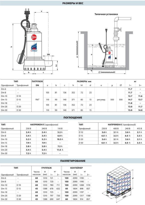 - Электронасосы D8-10-20 с кабелем питания длиной 10 м. N.B.: Кабель электропитания длиной 10 м обязателен при эксплуатации вне помещений в соответствии со стандартом EN 60335-2-41