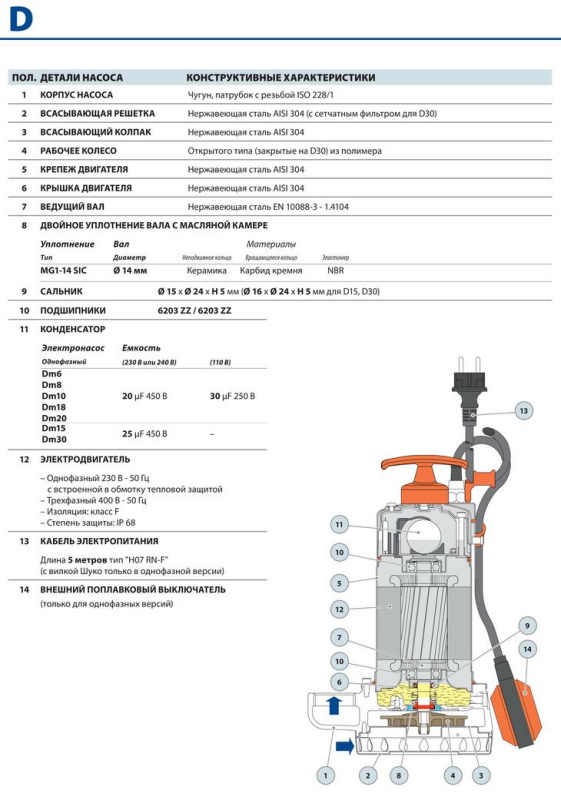 - Электронасосы D8-10-20 с кабелем питания длиной 10 м. N.B.: Кабель электропитания длиной 10 м обязателен при эксплуатации вне помещений в соответствии со стандартом EN 60335-2-41