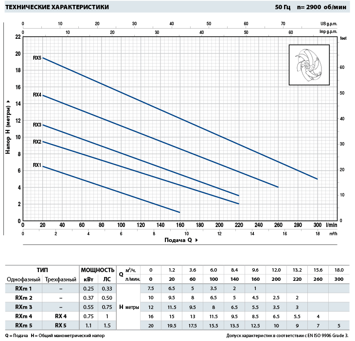 - Электронасосы RX 1-2-3 с кабелем питания длиной 10 м. N.B.: Кабель электропитания длиной 10 м обязателен при эксплуатации вне помещений в соответствии со стандартом EN 60335-2-41