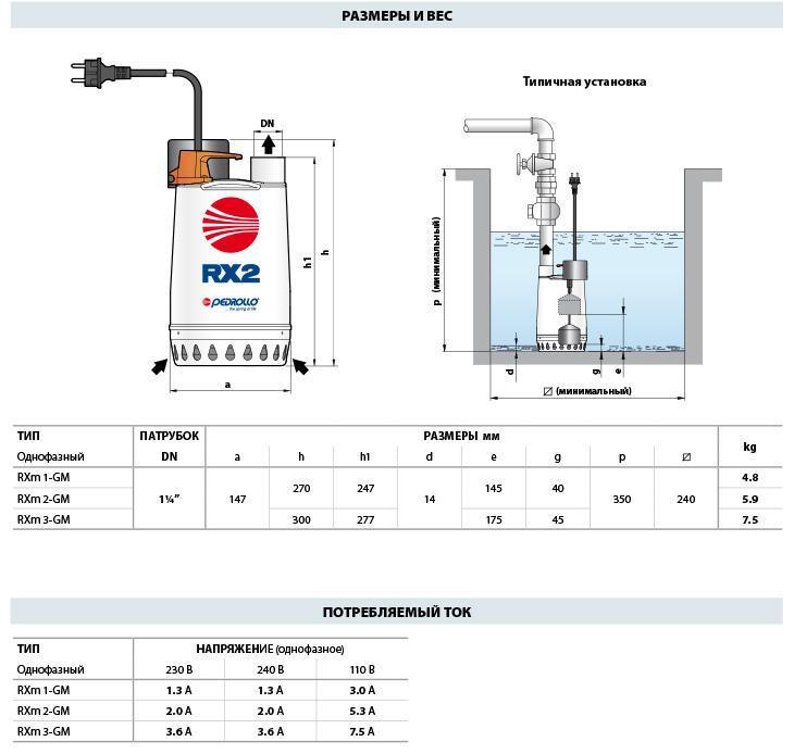 - Электронасосы RX-GM с поплавковым выключателем, перемещающимся вертикально (предназначены для работы в узких колодцах)