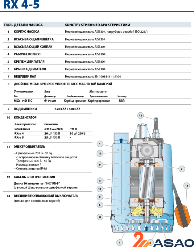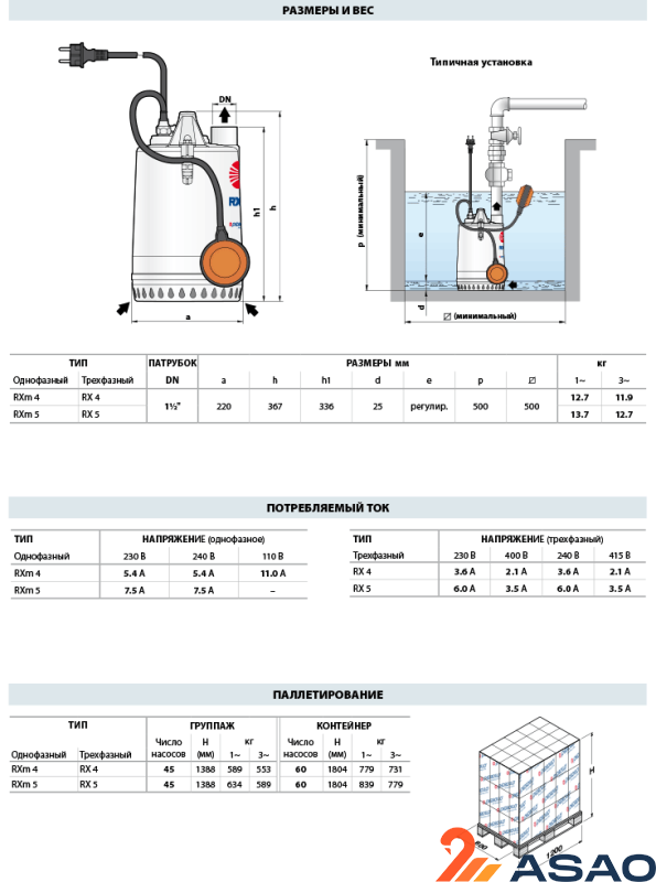 - Электронасосы RX-GM с поплавковым выключателем, перемещающимся вертикально (предназначены для работы в узких колодцах)