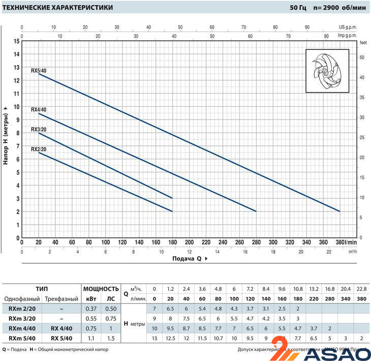 - Электронасосы RX 2-3/20 с кабелем питания длиной 10 м. N.B.: Кабель электропитания длиной 10 м обязателен при эксплуатации вне помещений в соответствии со стандартом EN 60335-2-41