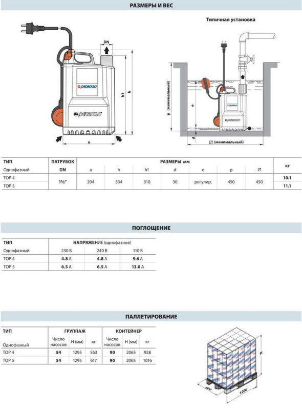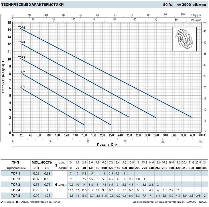 Электронасосы TOP 1-2-3 с кабелем питания длиной 10 м. N.B.: Кабель электропитания длиной 10 м обязателен при эксплуатации вне помещений в соответствии со стандартом EN 60335-2-41