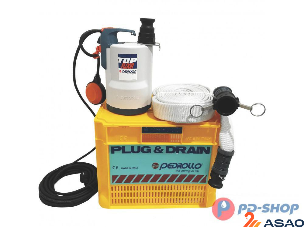 Комплект для откачки воды PEDROLLO Plug&Drain - TOP 2 FLOOR от PEDROLLO – современный дренажный насос. Он может использоваться в том случае, если требуется перекачать жидкость из бассейна, отвести сточные воды или осушить затопленный подвал. Поэтому его применение возможно в строительстве, в частном домохозяйстве и коммунальными службами. Комплект для откачки воды PEDROLLO Plug&Drain - TOP 2 FLOOR не требует специального подключения и быстро производит транспортировку большого объема воды. К основным преимуществам данного насоса относится компактный размер и небольшой вес, надежность и долговечность конструкции, автономная работа, стойкость к негативным воздействиям внешней среды, доступная цена , отсутствие потребности в сложном обслуживании.
