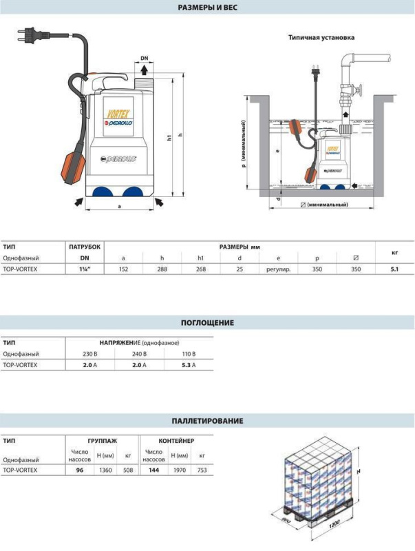 ОБЛАСТЬ ПРИМЕНЕНИЯ И УСТАНОВКА НАСОСОВ СЕРИИ TOP VORTEX: