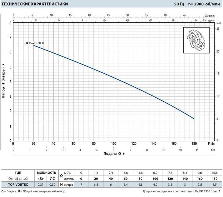 - напор Pedrollo top-vortex до 7 м