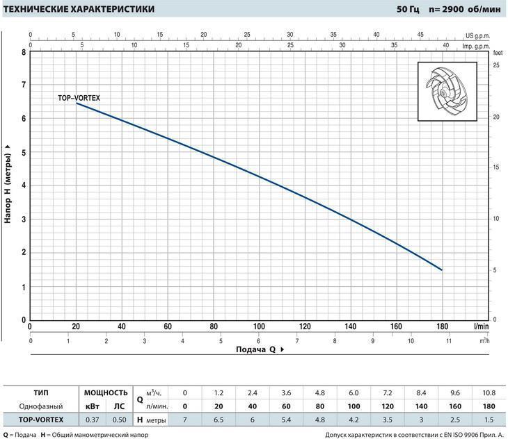 Характеристиками новых электронасосов ТОР VORTEX являются: дизайн, технология и новаторские материалы, которые обеспечивают простоту в эксплуатации и безопасность функционирования. Эта модель, благодаря испытанной системе VORTEX, позволяет подъем загрязненных вод с твердыми частицами во взвешенном состоянии без какой-либо опасности засорения рабочего колеса.