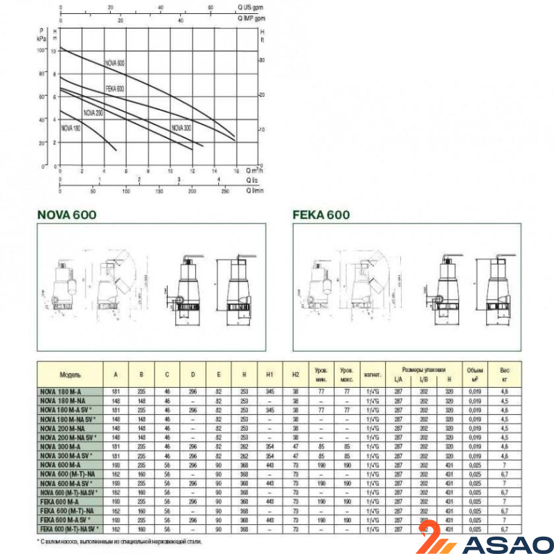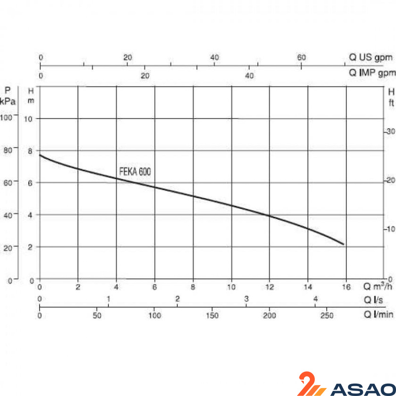 Погружной насос FEKA 600 M-NA-SV от компании DAB является отличным помощником в системах дренажа, как индивидуальных, так и коллективных, а также хороший помощник в отводах бытовых, хозяйственных или фекальных вод. Выполнен такой насос из качественных материалов, обладают высокими характеристиками и долгим сроком годности. Большая часть насоса сделана из чугуна и нержавеющей стали. Корпус насоса, рабочее колесо, верхняя крышка и решетка выполнены из технополимера. Нержавеющая сталь учувствовала в изготовлении двигателя, вал и крепежные винты. Насос FEKA 600 M-NA обладает асинхронным двигателем с продолжительной работой. Ротор вращается в высококачественных шарикоподшипниках, которые не нуждаются в смазке, из-за чего увеличивается продолжительность работы. Оптимальное погружение для работы доходит до 7 метров. Максимальный напор данного устройства достигает 7.45 метров, а максимальный расход доходит до 15.9 кубических метров в час. FEKA 600 M-NA обладает двойным сальникововым уплотнением на валу двигателя вместе с масляной предкамерой.