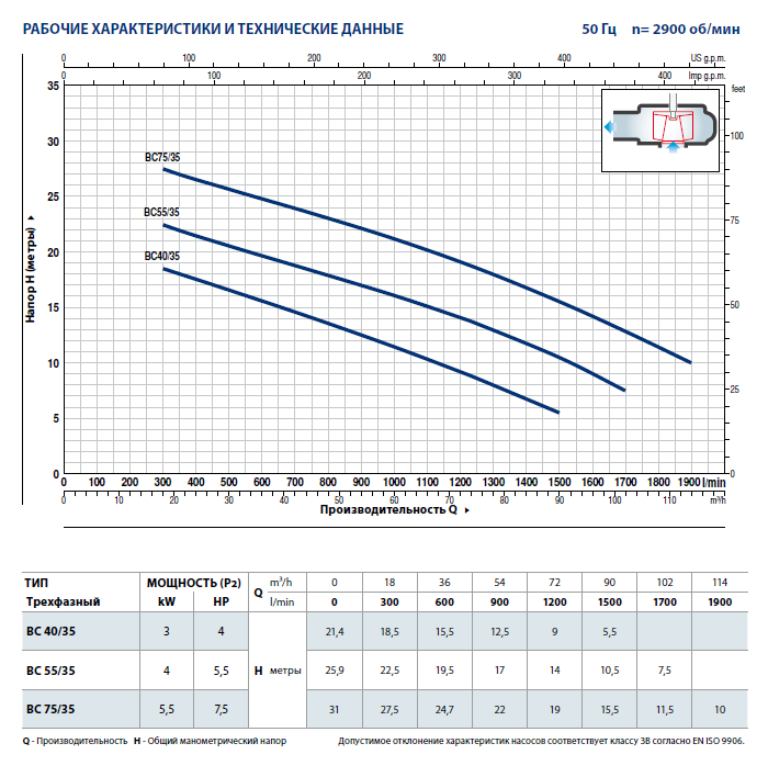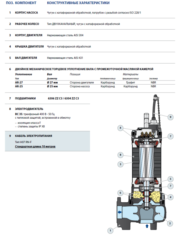 - Максимальное прохождение твердых частиц во взвешенном состоянии до d=35 мм
