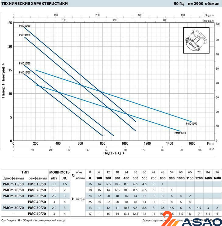 Одноканальные погружные насосы высокого давления серии РМС, разработаны для откачки загрязненных и сточных вод, как в бытовой, так и в промышленной области. Электронасосы РМС оснащены одноканальным рабочим колесом, заключенным в просторную кольцевую камеру, защищенную корпусом насоса и основанием, которое имеет обработанную поверхность для установления зазора рабочего колеса; всасывающий патрубок, установленный в основании насоса, непосредственно соприкасается с накачиваемой жидкостью. Посредством вращения рабочего колеса кинетическая энергия передается жидкости, которая под действием центробежной силы направляется в кольцевую камеру, в которой происходит преобразование части кинетической энергии в энергию давления. Особая геометрическая форма рабочего колеса не только обеспечивает высокие значения гидравлического КПД, но и позволяет перекачивать жидкости, содержащие грязь с твердыми частицами во взвешенном состоянии, без опасности закупорки.