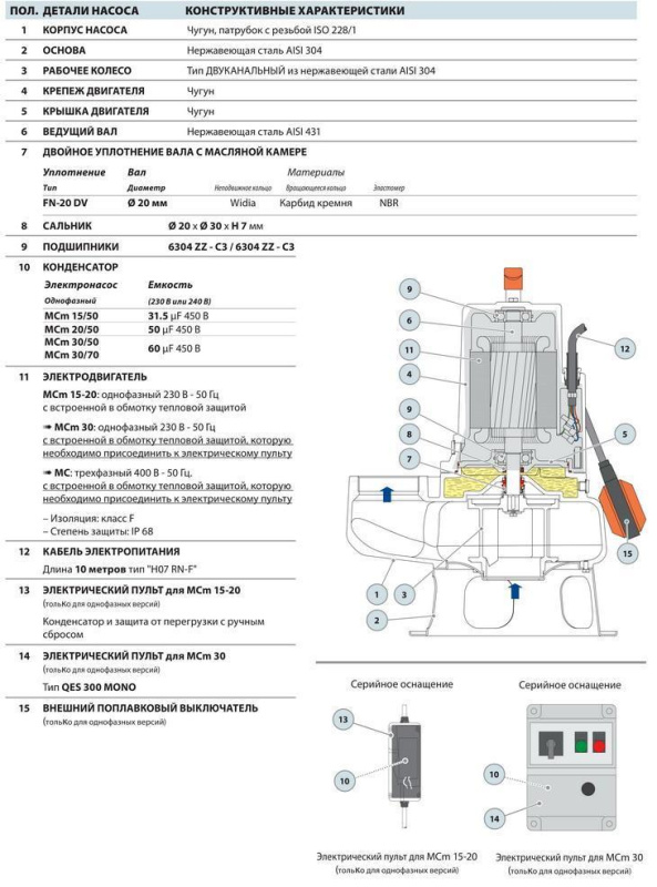 Насосы высокого давления серии РМС оснащены одноканальным рабочим колесом из чугуна, которое позволяет откачивать жидкости содержащие твердые частицы во взвешенном состоянии, даже с присутствием коротких волокнистых тел. Эти насосы особо рекомендованы для подъема сточных и канализационных вод, вод в смеси с грязью, грунтовых и поверхностных вод в следующих областях применения: группы домов, общественные здания, промышленные предприятия, многоэтажные гаражи, зоны парковки, подземные гаражи, зоны мойки, внутри колодцев. Будучи полностью изготовлены из чугуна, значительной толщины, эти насосы отличаются чрезвычайной прочностью и устойчивостью к абразивному воздействию, а также долговечностью. Насосы укомплектованы фланцевым нагнетательным патрубком, опорным коленом и направляющими для стационарной установки.