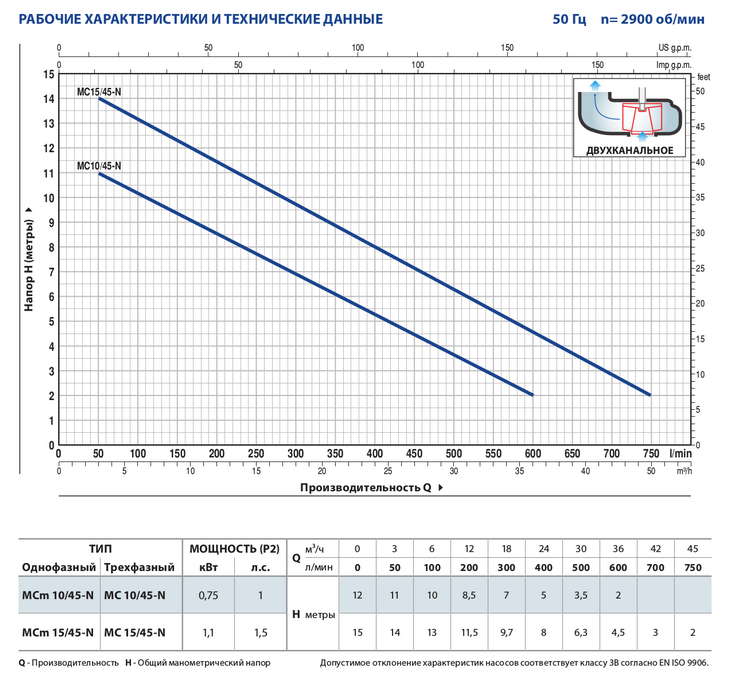 Одноканальные погружные насосы высокого давления серии РМС, разработаны для откачки загрязненных и сточных вод, как в бытовой, так и в промышленной области. Электронасосы РМС оснащены одноканальным рабочим колесом, заключенным в просторную кольцевую камеру, защищенную корпусом насоса и основанием, которое имеет обработанную поверхность для установления зазора рабочего колеса; всасывающий патрубок, установленный в основании насоса, непосредственно соприкасается с накачиваемой жидкостью. Посредством вращения рабочего колеса кинетическая энергия передается жидкости, которая под действием центробежной силы направляется в кольцевую камеру, в которой происходит преобразование части кинетической энергии в энергию давления. Особая геометрическая форма рабочего колеса не только обеспечивает высокие значения гидравлического КПД, но и позволяет перекачивать жидкости, содержащие грязь с твердыми частицами во взвешенном состоянии, без опасности закупорки.