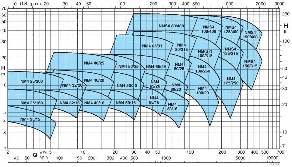 - Максимально допустимое конечное давление в корпусе насоса: 16 бар (для NM4 40/16,20; NM4 50/16; NM4 65/16,20,25; NM4 80/16)