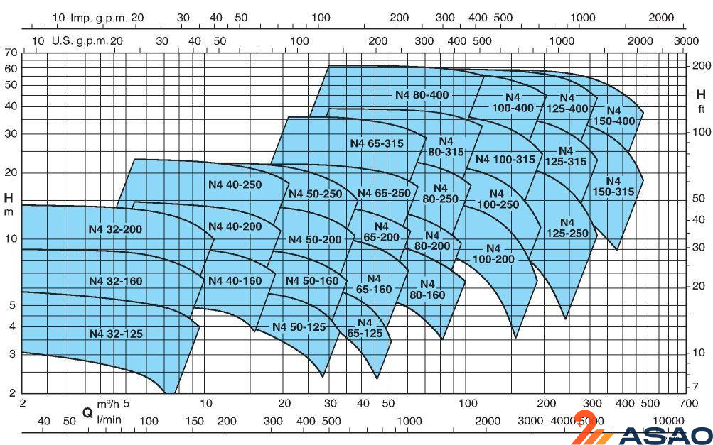 - Максимально допустимое конечное давление в корпусе насоса: 16 бар (для N,N4 40/160,200; N,N4 50/125,160; N,N4 65/125,160,200,250; N,N4 80/160)