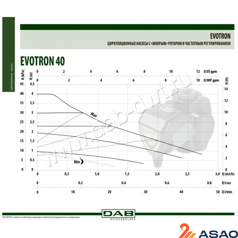 Насос циркуляционный бытовой DAB EVOTRON 40/130 от компании DAB – современный циркуляционный насос с мокрым ротором. Его главным назначением является организация эффективной систему горячего водоснабжения и центрального отопления. Данный насос имеет мощность электродвигателя , высокий КПД, низкое энергопотребление и плавное регулирование скорости и режимов работы. К другим преимуществам насос циркуляционный бытовой dab evotron 40/130 относится бесшумная работа, надежность и длительный срок службы. К тому же такой насос не требует частого обслуживания, что дополнительно снижает стоимость его эксплуатации.